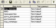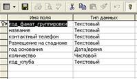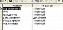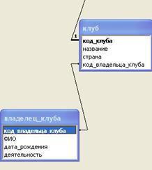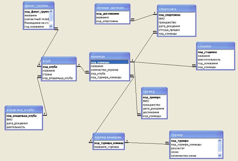 Экземпляры каждой сущности должны быть различными. Для их идентификации используют ключ, представляющий собой один из атрибутов сущности. Для экземпляров сущности «Клуб» ключевым атрибутом определим «Код клуба», так как он уникален для каждой записи. Для сущности «Спортсмен» - «Код спортсмена» и т.д.