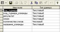 С учетом того, что связи М:М не могут быть представлены в окончательной схеме данных, введем межсекционную сущность «турнир команды», в которую включим ключи исходных сущностей. Таким образом, получим следующие связи - между сущностями «команда» и «турнир команды» М:1 между сущностями «турнир» и «турнир команды» М:1