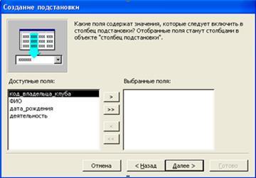 3. Выбрать поля, значения которых следует включить в столбец подстановки (Рис.7):