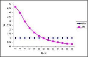 Рис. 6.1 – Залежність W від дальності для вікна при знятті інформації за