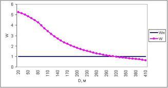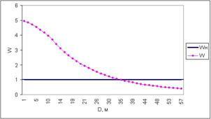 Рис. 7.1 – Залежність W від дальності для вікна при знятті інформації за