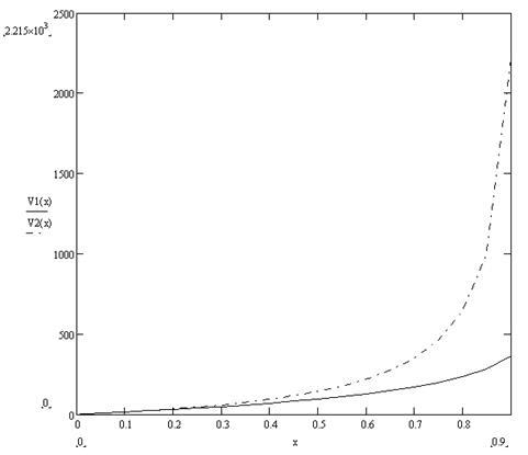 Сравнение изотермического реактора идеального вытеснения и реактора полного смешения в зависимости от степени превращения