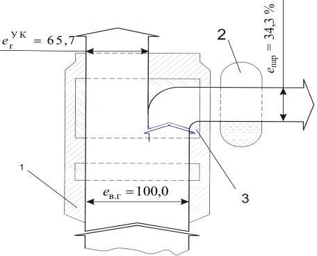 У графічній частині курсової роботи – на аркуші КР.7.090509.5214.08.11.02, відповідно до табл. 2.5, зображено потоки енергії в СЕУ в частках від енергії, що виділилась при згорянні палива у ГД та ДГ. Таким чином, енергія що виділилась при згорянні в СЕУ, прийнята за одиницю, тобто = 1.