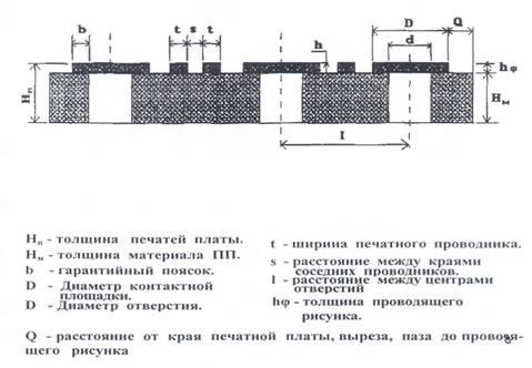 Основные конструкционные характеристики однослойных печатных плат (рис. 1):