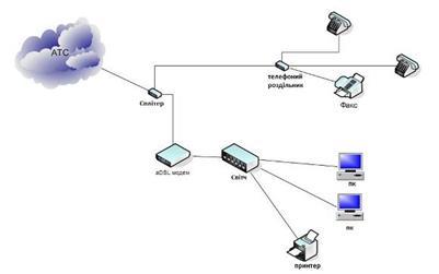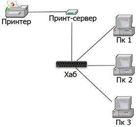 Рисунок 1 – Схема підключення принтера через принт-сервер