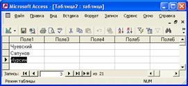 В поля этой таблицы нужно ввести требуемые данные. Тип данных в одном поле (столбце) во всех записях должен быть одинаковым.