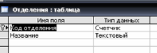 Таблица «Отделения» содержит сведения о отделениях центра. Она имеет следующий вид: