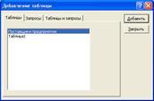 Рисунок 10. Диалоговое окно Добавление таблицы