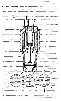 Рис.18 Гидрофоны: а-дисковый гидрофон; б-гасящий ускорения дисковый гидрофон; в — цилиндрический гидрофон. [4]