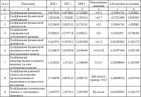Наибольшую долю в составе пассива баланса занимают собственный капитал и резервы. Причем в динамике к концу 2008 года он увеличился и составил 72 %. Это свидетельствует об увеличении финансовой устойчивости предприятия. Также положительным моментом в деятельности предприятия является уменьшение доли уставного капитала в составе собственных средств, поскольку это говорит о том, что собственный капитал пополняется за счет нераспределенной прибыли, а не за счет дополнительного взноса в уставный капитал акционерами.