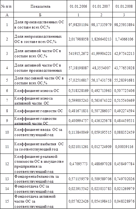 Из произведенных расчетов видно, что на анализируемом предприятии в составе основных средств большую часть составляют производственные – 98 %. За анализируемый период произошло незначительное изменение их доли на 0,27 % в 2008 году по сравнению с 2006 годом и соответственно – снижение доли непроизводственных основных средств.