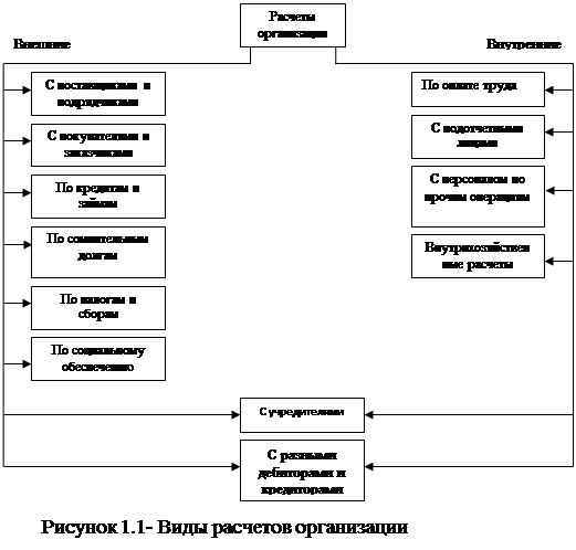 Все возникающие у предприятия расчеты можно разделить на внутренние и внешние. На рисунке 1.1 представлены виды расчётов.
