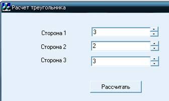 Данная программа написана на языке Visul ++ 6.0. После запуска программа предлагает ввести длины сторон треугольника и рассчитать некоторые его характеристики.