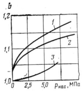 На рис. 3 показана зависимость величины объемного коэффициента от давления насыщения для некоторых месторождений. На рис. 4 приведены значения растворимости газа в нефти и объемного коэффициента пластовой нефти в функции давления.