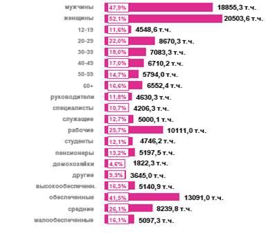 Поэтому, если говорить о целевой аудитории радиорекламы, то она поистине безгранична. В первую очередь, это лица пожилого возраста, домохозяйки, которые длительное время находятся в домашней среде и чаще всего слушают радио.