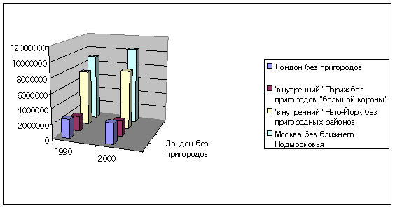 На диаграмме видно, насколько отличается рост численности населения Москвы от других крупных городов мира в период с 1990 по 2000 год. В процентном отношении, численность Парижан в черте города увеличилась за 10 лет — на 6, 2%, жителей Нью-Йорка почти на 10%, жителей Лондона на 7%, а вот население Москвы выросло на 11%. По официальным данным, конечно, так как по неофициальным данным, с учетом нелегальной миграции, эти цифры гораздо больше. Мы умышленно опускаем слово москвичей, так как в основном количество жителей увеличилось за счет приезжих как из регионов РФ, так и из стран СНГ.