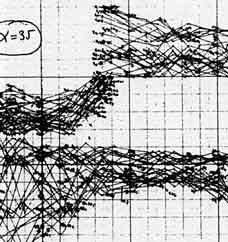 Восходящие линии означают здесь движения по глиссандо вверх, нисходящие – вниз. Тем не менее, в отличие от Брауна, произведение это не импровизационно: точно обозначены начало и конец глиссандо, а также их продолжительность. Но вместе с тем партитура точно показывает и эмоциональный характер музыки.