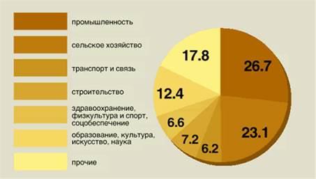 Наибольшую долю в структуре производства занимают электроэнергетика (26%), добыча полезных ископаемых (24%), машиностроение и металлообработка (12%), химическая и нефтехимическая промышленность (7%), пищевая и перерабатывающая промышленность (17%).