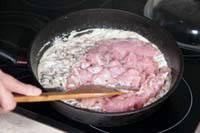 Грибы обжарить на сливочном масле, не забывая помешивать. Посыпать мукой, размешать. Тонкой струйкой влить сливки, размешать. Добавить куриное мясо, размешать, довести до кипения и сразу же убавить огонь до минимума. Посолить и поперчить по вкусу. Снять начинку с плиты, дать остыть.