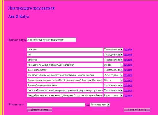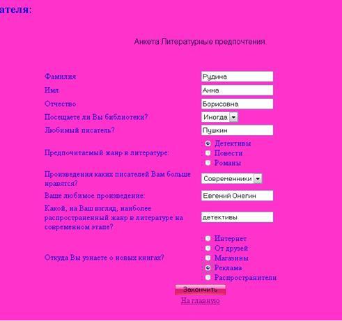 Ключевые слова: Анкета, страничка,