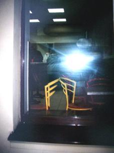 Конечно, обычно посетители на потолок не смотрят, но если и взглянут, то видят, что в “Блин! Дональт’s” всё “как у них”. Этой же цели служат и стеклопакеты на окнах, не закрытые шторами или другими декоративными элементами (ДИ – 5), и коричневатый с отливом, “под гранит” кафель, который виден на многих фотографиях. ДИ5 ДИ6