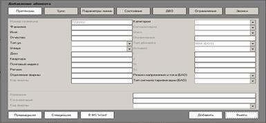 В окне "Добавление абонента", воспроизведенном на рисунке 2.13, заполнить поля информацией об абоненте и нажать "Добавить".