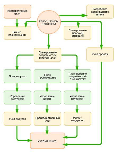 Во-вторых (в более общем контексте), это — методология эффективного планирования и управления всеми ресурсами предприятия, которые необходимы для осуществления продаж, производства, закупок и учета при исполнении заказов клиентов в сферах производства, дистрибьюции и оказания услуг