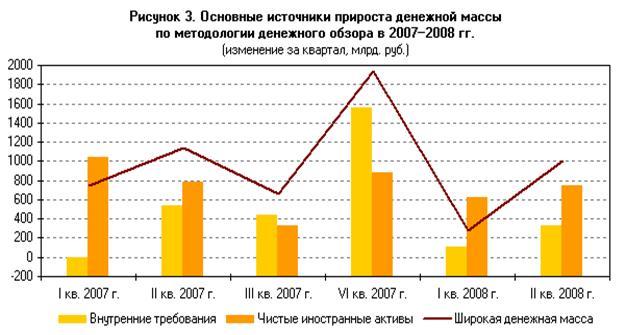 Рисунок3-Основные источники прироста денежной массы по методологии денежного обзора в 2007-2008 гг.