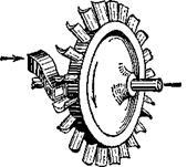 Турбина (см. рисунок 4) состоит из стального цилиндра, внутри которого находится вал с укрепленными на нем рабочими колесами. На рабочих колесах находятся особые изогнутые лопатки (