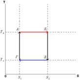 Полезная работа, совершённая этими двигателями, численно равна площади фигур, ограниченных графиками тепловых процессов, происходящих с рабочим телом.