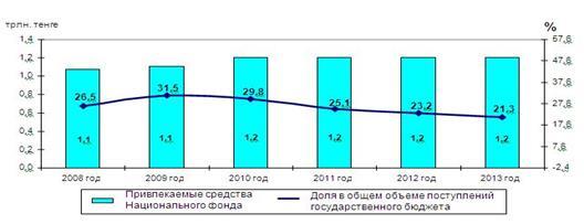 С учетом вышеизложенных подходов, дополнительные накопления в Национальном фонде к 2020 году составят более 40 млрд. долл. США, а активы должны возрасти до 90 млрд. долл. США, что составит не менее 30% к ВВП.