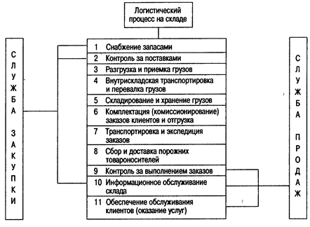 Логистический процесс на складе весьма сложен, поскольку требует полной согласованности функций снабжения запасами, переработки груза и физического распределения заказов. Практически логистика на складе охватывает все основные функциональные области, рассматриваемые на микроуровне.