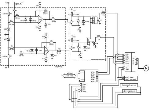 Схема управления, реализованная с помощью печатной платы, обеспечивает требуемый алгоритм и преобразует аналоговый сигнал в цифровой с целью управления реверса ШД.