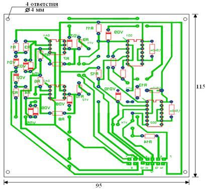 Печатная плата, представленная на рис. 6,управляет схемой системы управления стабилизации температуры, показанной на рис. 4.