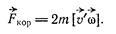 , направлено перпендикулярно скорости направо в Северном полушарии и налево в Южном, а по величине равно 2ωvsin ϕ.