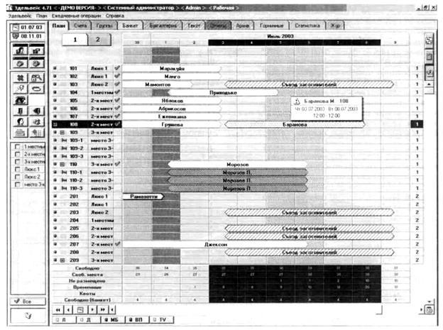 При росте объема продаж, с одной стороны и усиливающейся конкуренции-с другой, повышается значение оперативности в работе персонала. В решении этой проблемы краеугольным камнем выступает комплексная автоматизация отеля, достигаемая применением Автоматизированных Систем Управления (АСУ) отелем, или - в английском варианте - Property Management System (PMS). Основной функцией таких систем является представление состояния номерного фонда, информация о занятости (зарезервированности) каждого конкретного номера, что позволяет осуществлять планирование продаж номеров в будущем, или бронирование и текущий контроль за деятельностью средства размещения. Помимо прочего, АСУ позволяют избавиться от бумажной волокиты и исключить либо максимально уменьшить возможность ошибок, так называемого человеческого фактора, являющихся причиной дополнительных неудобств и материальных затрат.
