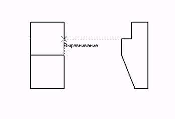 Установите начальную точку прямоугольника используя привязку Выравнивание (рис. 9) (выравнивание выполняйте по крайней нижней точке уже начерченного вида).Рис.9 Начало создания вида спереди
