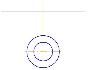 Создайте окружность радиусом 14 мм, при этом в Строке параметров объекта укажите "С осями". Появится окружность вместе с осевыми линиями.