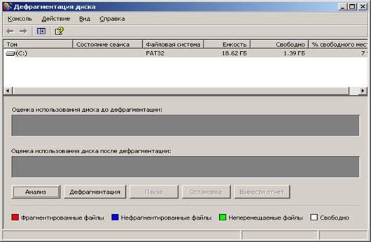 На рис.2 представлен внешний вид окна программы дефрагментации дисков, входящей в стандартную поставку Windows.