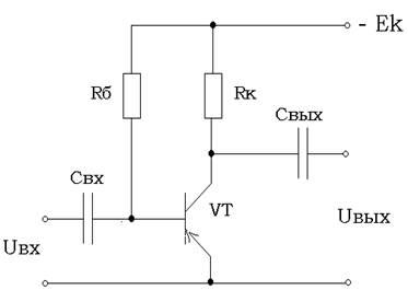 В каскадах предварительного усиления на биполярных транзисторах чаще других используется схема с общим эмиттером, которая обладает высоким коэффициентом усиления по напряжению и мощности, сравнительно большим входным сопротивлением и допускает использование одного общего источника питания для цепей эмиттера и коллектора.