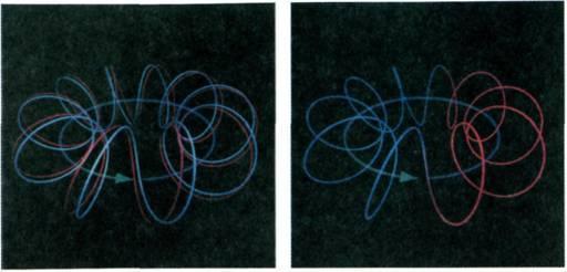 Так выглядит процесс слияния струн на трехмерной пространственно‑временной диаграмме, где два измерения пространственные, а одно — временное. Значительно более подробное популярное описание теории струн дается в замечательной книге Брайана Грина «Элегантная Вселенная. Суперструны, скрытые размерности и поиски окончательной теории» (М., 2004).