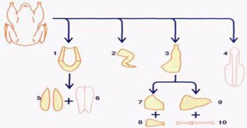 Морфологический состав мяса птицы отличается от состава убойных животных тем, что кости скелета птицы тонкие и легкие, но очень прочные.
