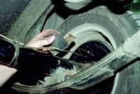 В случае необходимости ремонта днища кузова легкового автомобиля на поворотном стенде, автомобиль надежно укрепляют, топливо из топливных баков и воду из системы охлаждения сливают, плотно закрывают маслозаливную горловину двигателя, аккумуляторную батарею снимают. Если снятие агрегатов и деталей связано с большим физическим напряжением, а также создает неудобства в работе (например, тормозные и клапанные пружины, барабаны, рессорные пальцы и т.д.), следует применять приспособления (съемники), обеспечивающие безопасность при выполнении этой работы. Применять съемник следует только для той операции, для которой он предназначен. При работе со съемником необходимо следить за правильной установкой съемника на детали. Захваты должны надежно и правильно держать деталь. При применении съемника не следует употреблять никаких дополнительных рычагов с целью удлинения воротка съемника.