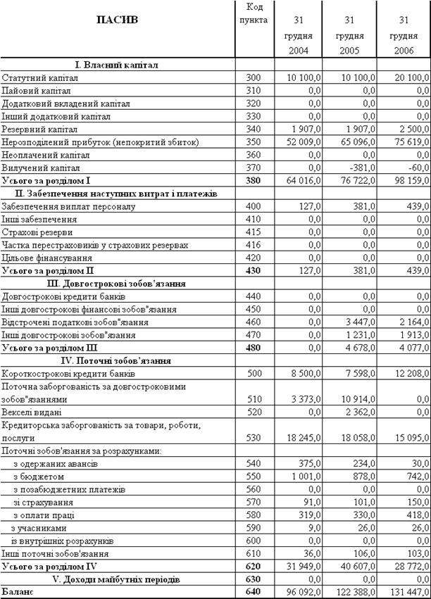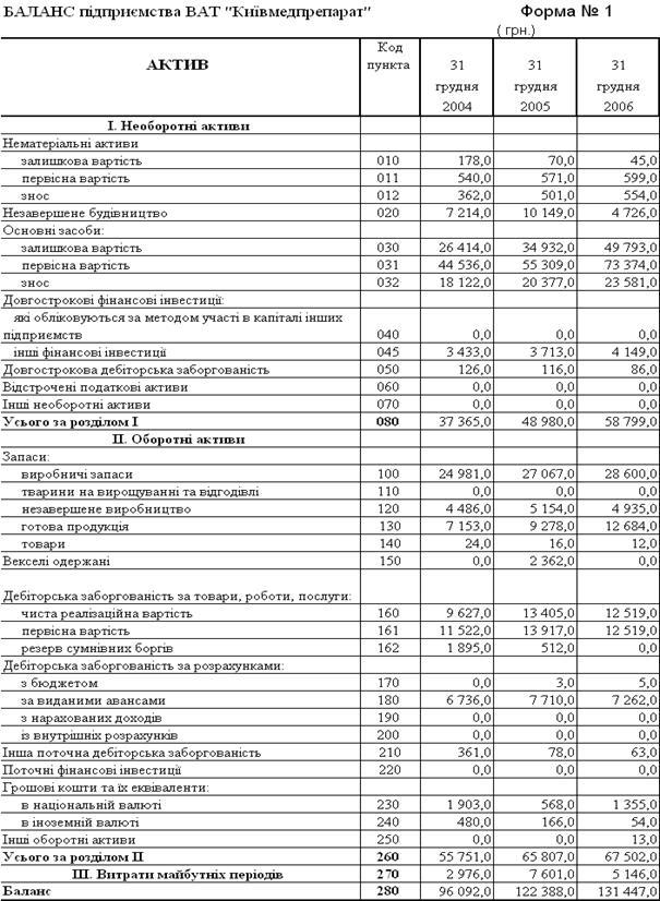 Динаміка балансів ВАТ “Київмедпрепарат” у 2004 – 2006 роках
