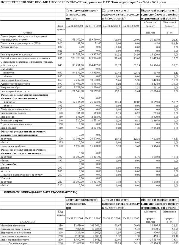 Динаміка звітів про фінансові результати ВАТ “Київмедпрепарат"