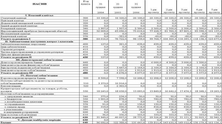 Прогнозні баланси ВАТ “Київмедпрепарат” при впровадженні інвестиційного проекту