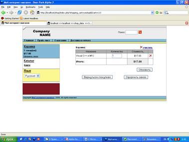 Пользовательская корзина. Пользовательская корзина представляет собой некоторый массив данных, который служит для хранения заказанного пользователем товара.