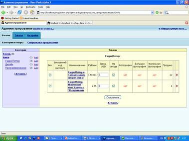 Во-первых, список товаров, находящихся на складе. Так как онлайновый «прилавок» как правило, привязан к системе автоматизации какого-либо предприятия, то этот список содержит те же изделия, что имеются в продаже и в обычных (не виртуальных) магазинах. Содержимое склада представляется обычно в виде иерархической древовидной структуры, базовыми элементами которой являются группы товаров. Щелкнув мышью на группе, она разворачивается, открывая список подгрупп или конкретных изделий определенного типа. Иногда покупатель может посмотреть картинку с изображением товара и его характеристики, а также добавить его в свою корзинку.