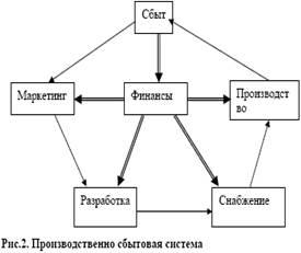 Мировой опыт показывает, что успеха достигают те компании, которые балансируют производственные, коммерческие и финансовые цели, то есть рассматривают предприятие как единую производственно-сбытовую систему (ПСС), связывающую воедино такие сферы как: маркетинг – создание новых изделий – снабжение – производство – сбыт – доставка продукции потребителю – сервисное обслуживание (см. рис. 2), и используют промышленные стандарты MRP/ERP в качестве базовой бизнес - модели, нацеленной на достижение экономической эффективности.