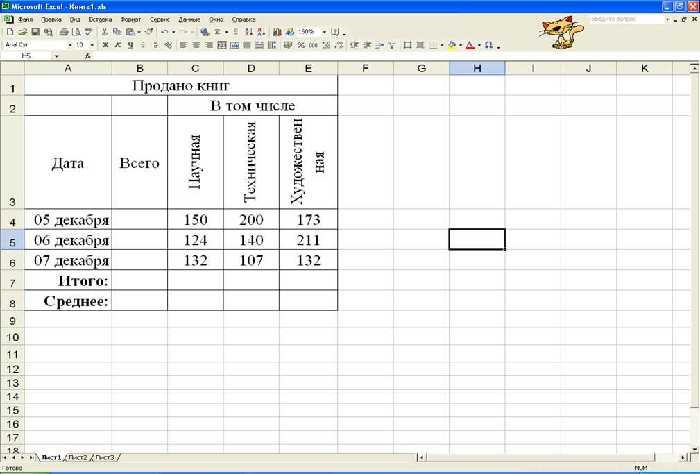 В программе Excel на листе 1 набрать таблицу и отформатировать ее.